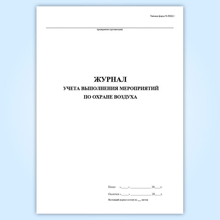 Журнал учета выполнения мероприятий по охране воздуха (форма ПОД-2) в Обнинске купить