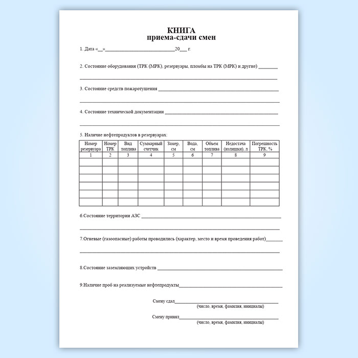 Книга приема-сдачи смен АЗС в Обнинске купить