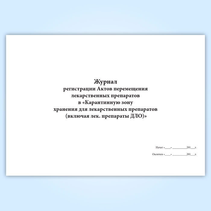 Журнал регистрации Актов перемещения лекарственных препаратов в «Карантинную зону хранения для лекарственных препаратов (включая лек. препараты ДЛО)» в Обнинске купить
