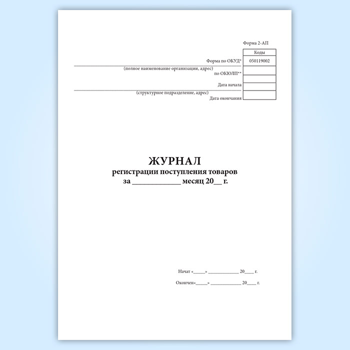 Журнал регистрации поступления товаров (форма 2-АП) в Обнинске купить