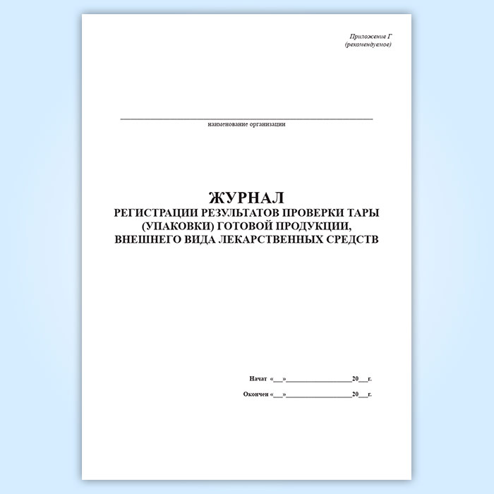 Журнал регистрации результатов проверки тары (упаковки) готовой продукции, внешнего вида лекарственных средств (форма Г) в Обнинске купить