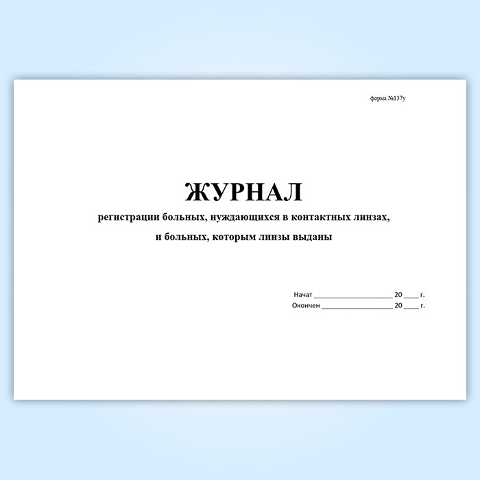 Журнал регистрации больных, нуждающихся в контактных линзах, и больных, которым линзы выданы (форма № 137/у) в Обнинске купить