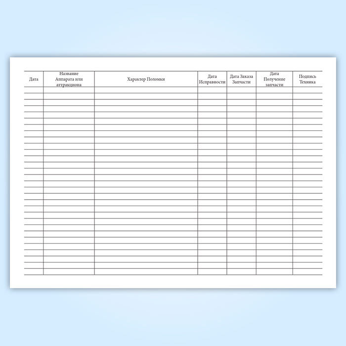 Журнал учета поломки аттракционов и игровых автоматов в Обнинске купить