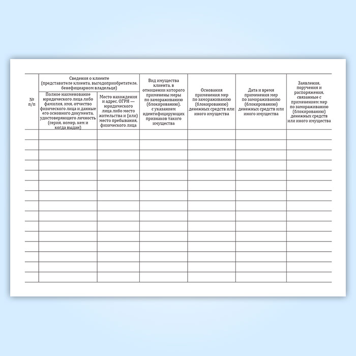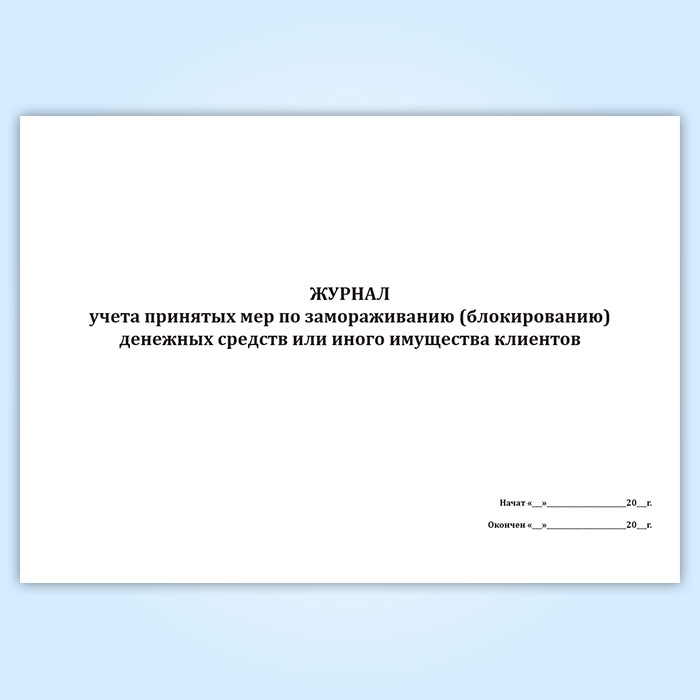 Журнал учета принятых мер по замораживанию (блокированию) денежных средств или иного имущества клиентов в Обнинске купить