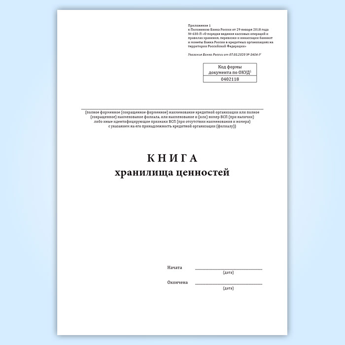 Книга хранилища ценностей (форма по ОКУД 0402118) в Обнинске купить