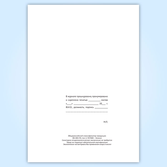 Вы получаете печатную продукцию прошнурованной и c местом для вашей печати в соответствии с действующими нормативными документами: