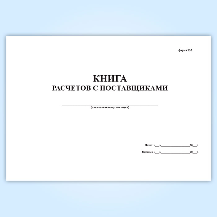Книга расчетов с поставщиками (форма К-7) в Обнинске купить