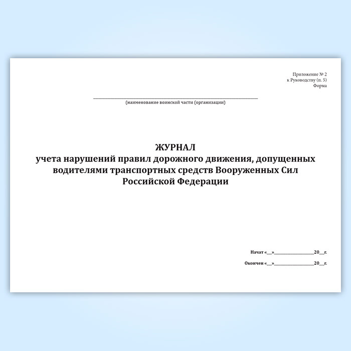 Журнал учета нарушений правил дорожного движения, допущенных водителями транспортных средств Вооруженных Сил Российской Федерации в Обнинске купить