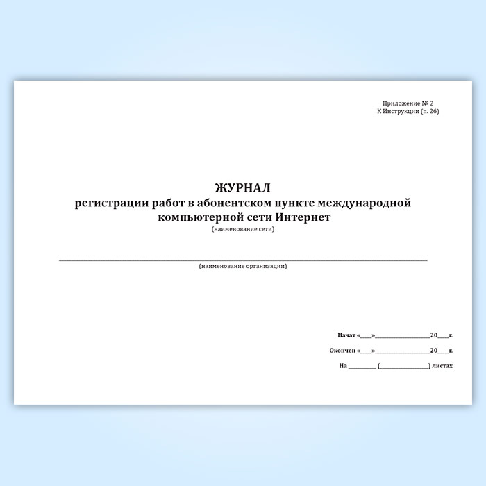 Журнал регистрации работ в абонентском пункте международной компьютерной сети Интернет в Обнинске купить