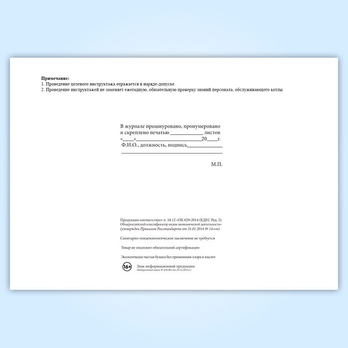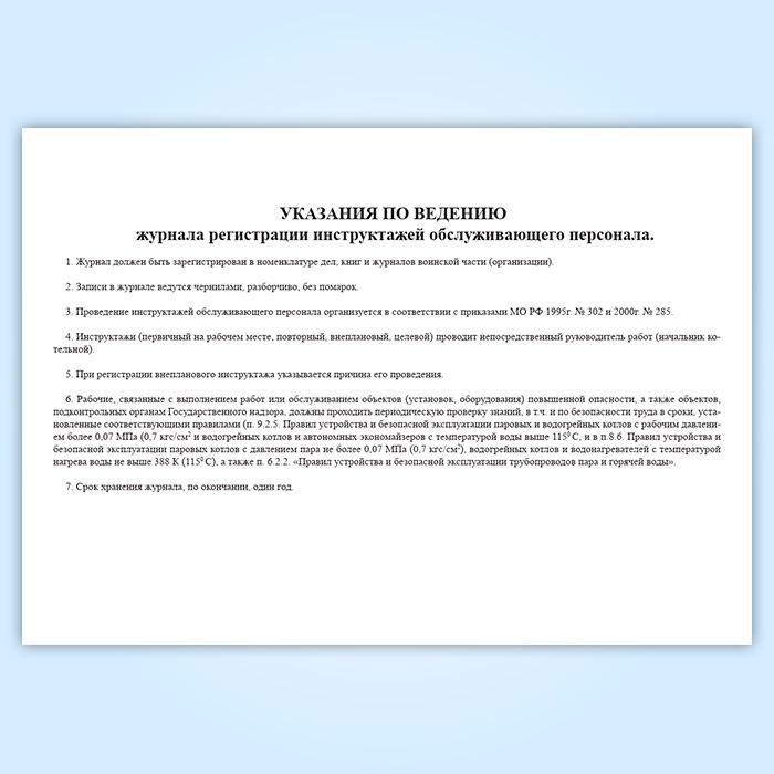 Журнал регистрации инструктажей обслуживающего персонала котельной (для воинских частей, предприятий и организаций) в Обнинске купить