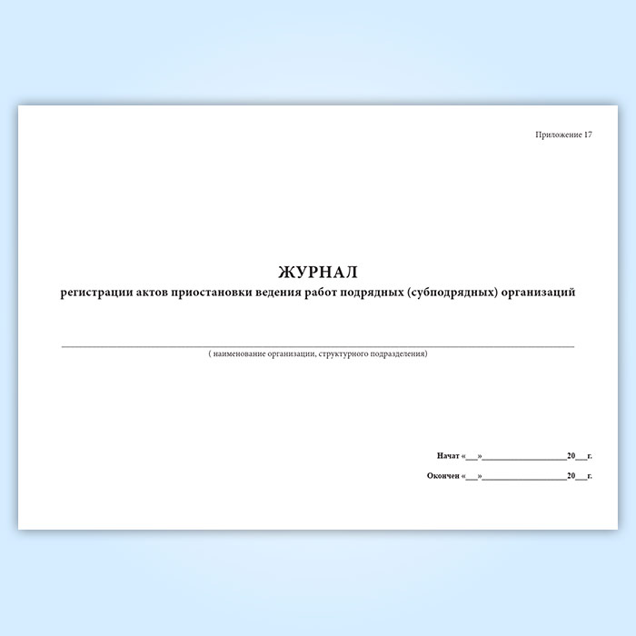 Журнал регистрации актов приостановки ведения работ подрядных (субподрядных) организаций в Обнинске купить