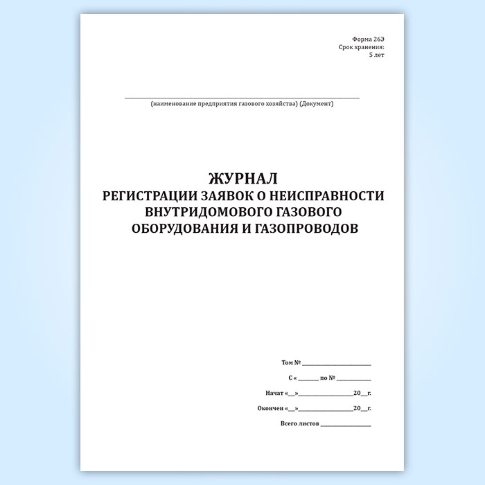 Журнал регистрации заявок о неисправности внутридомового газового оборудования и газопроводов (форма 26-Э) в Обнинске купить