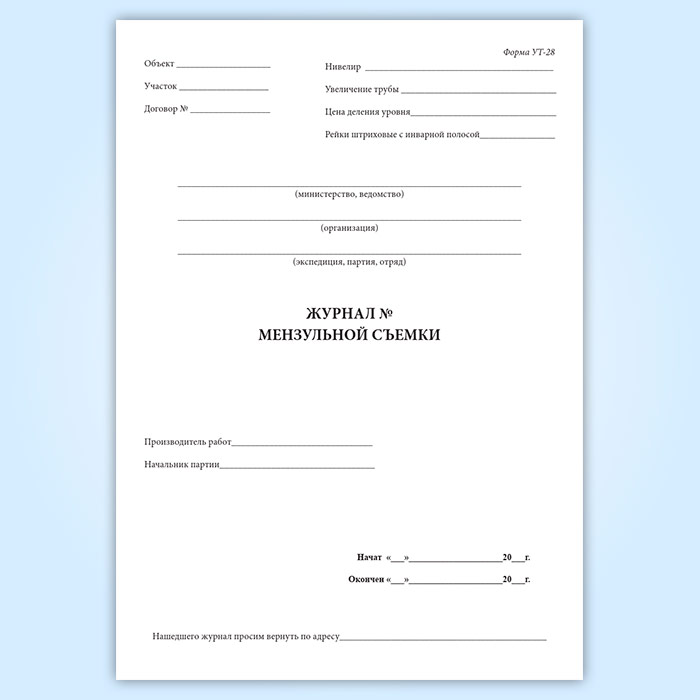 Журнал мензуальной съемки (форма УТ-28) в Обнинске купить