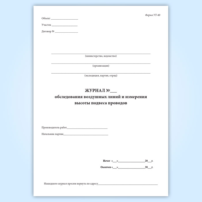Журнал обследования воздушных линий и высоты подвеса проводов (форма УТ-40) в Обнинске купить
