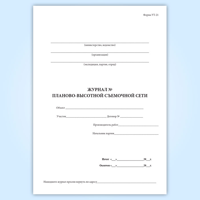 Журнал планово-высотной съемочной сети (форма УТ-21) в Обнинске купить