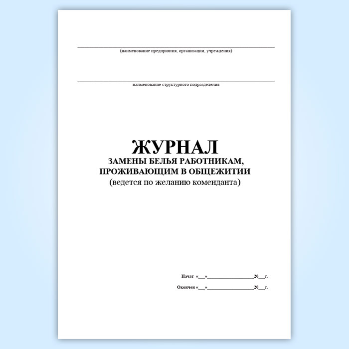 Журнал замены белья работниками, проживающими в общежитии в Обнинске купить