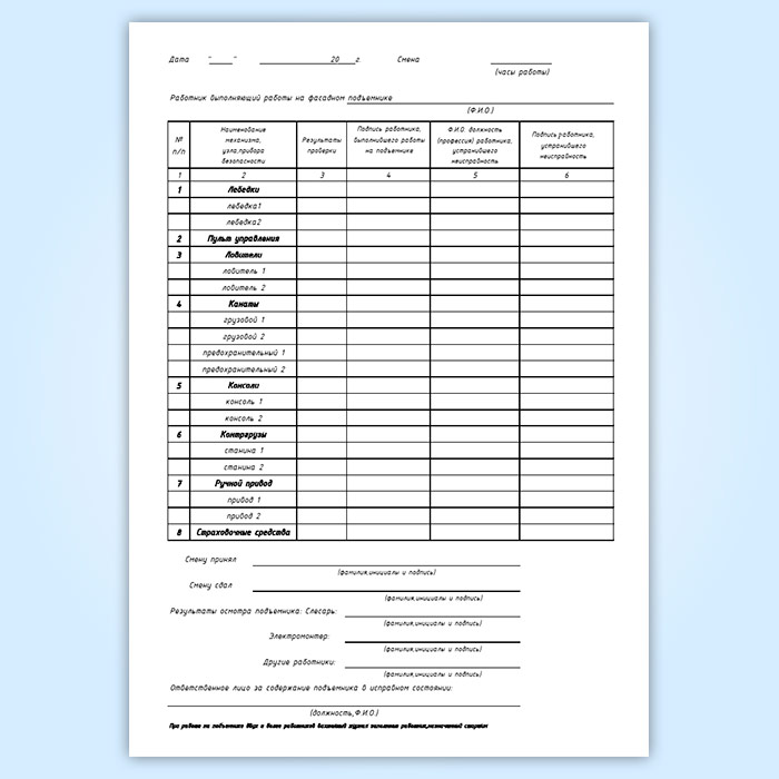 Вахтенный журнал фасадного двухподвесного подъемника в Обнинске купить