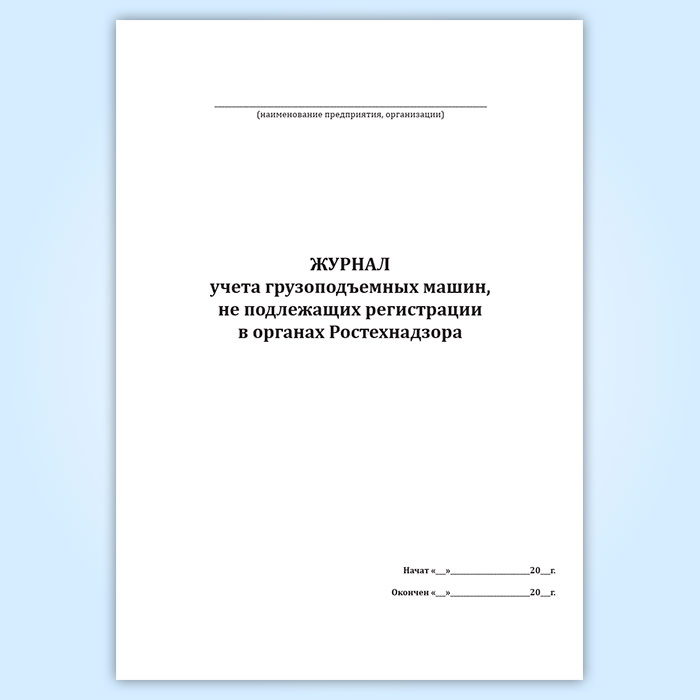 Журнал учета грузоподъемных машин, не подлежащих регистрации в органах Ростехнадзора в Обнинске купить
