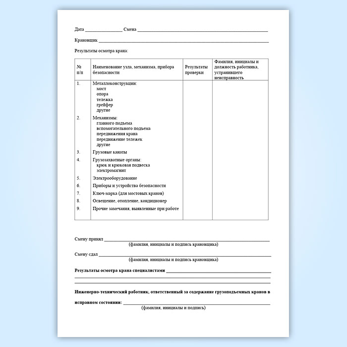 Вахтенный журнал крановщика (кранов мостового типа) в Обнинске купить