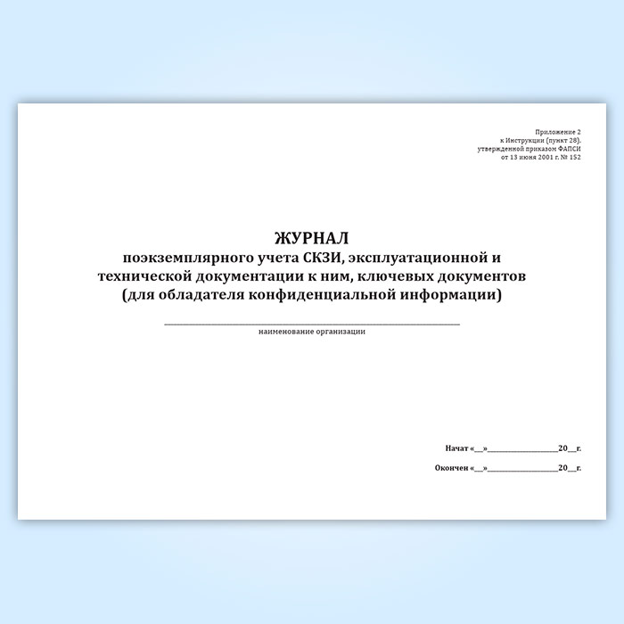 Журнал поэкземплярного учета СКЗИ, эксплуатационной и технической документации к ним, ключевых документов (для обладателя конфиденциальной информации) в Обнинске купить