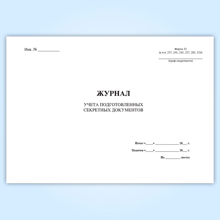 Журнал учета подготовленных секретных документов (форма 33) в Обнинске купить