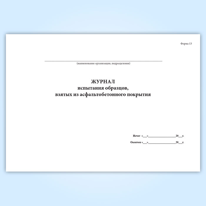 Журнал испытания образцов, взятых из асфальтобетонного покрытия (форма 13) в Обнинске купить