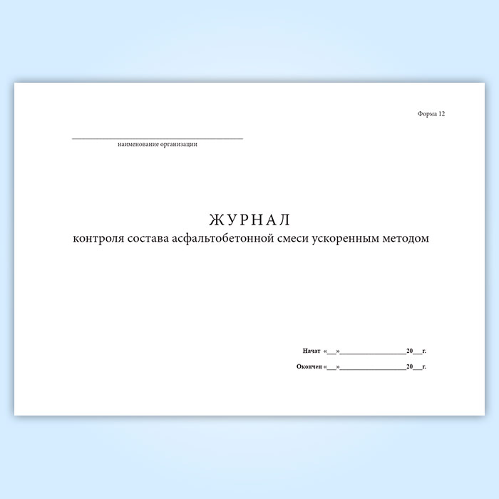 Журнал контроля состава асфальтобетонной смеси ускоренным методом (форма 12) в Обнинске купить