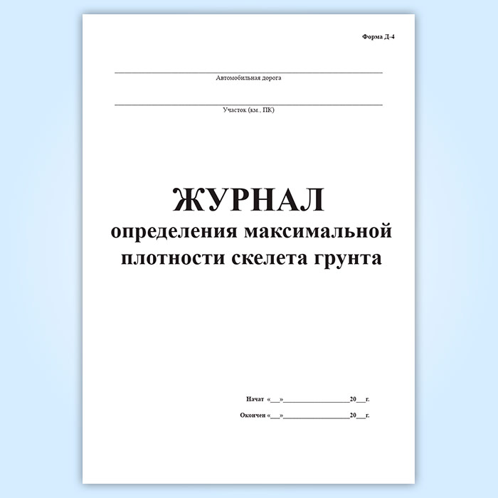 Журнал определения максимальной плотности скелета грунта в Обнинске купить