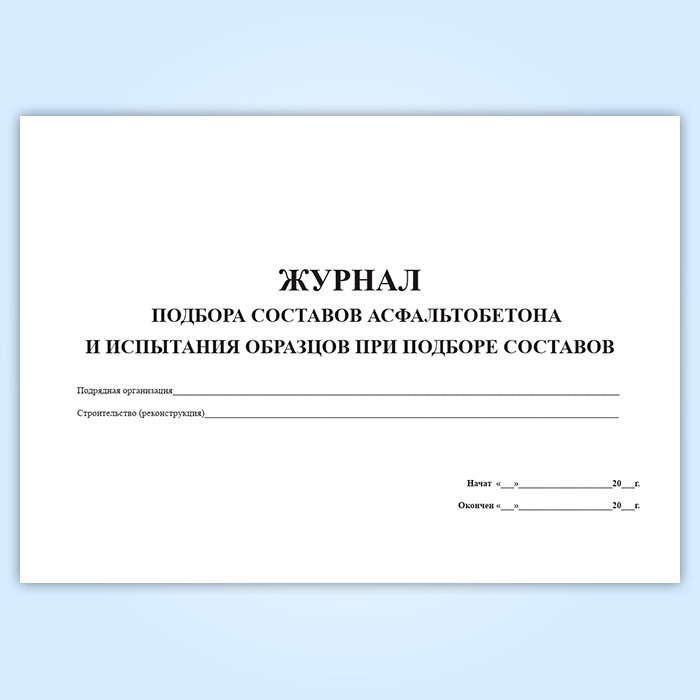Журнал подбора составов асфальтобетона и испытания образцов при подборе составов в Обнинске купить