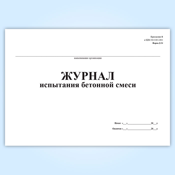 Журнал испытания бетонной смеси (форма № Д-24) в Обнинске купить