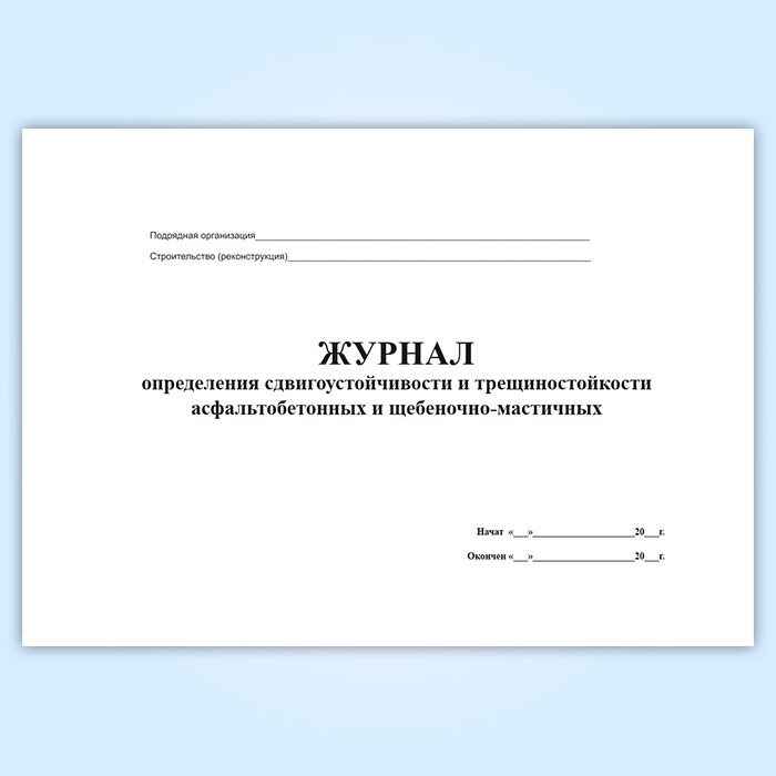 Журнал определения сдвигоустойчивости и трещиностойкости асфальтобетонных и щебеночно-мастичных покрытий в Обнинске купить