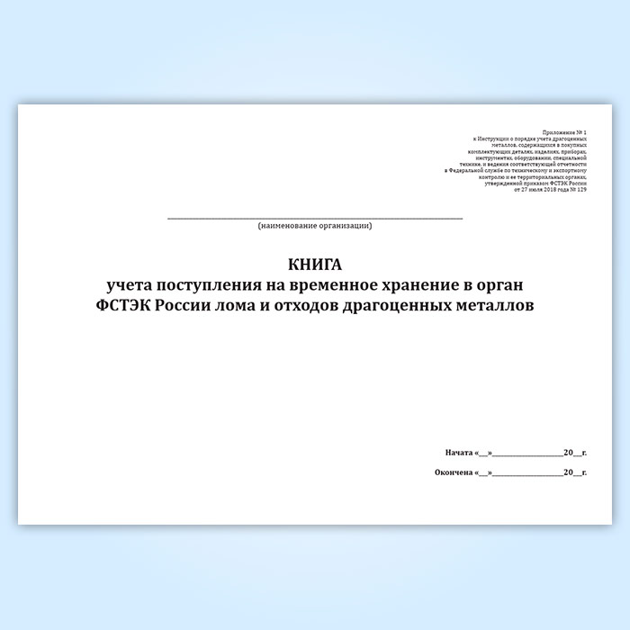 Книга учета поступления на временное хранение в орган ФСТЭК России лома и отходов драгоценных металлов в Обнинске купить