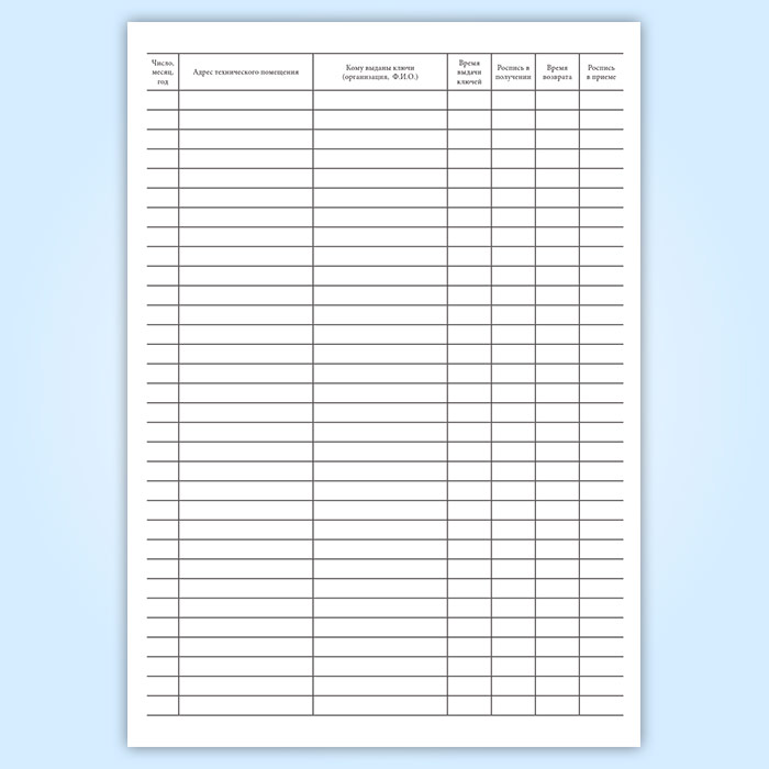 Журнал учета выдачи ключей от технических помещений, контролируемых ОДС в Обнинске купить