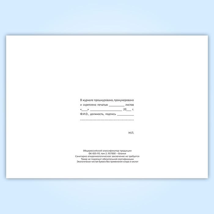 Вы получаете печатную продукцию прошнурованной и c местом для вашей печати в соответствии с действующими нормативными документами: