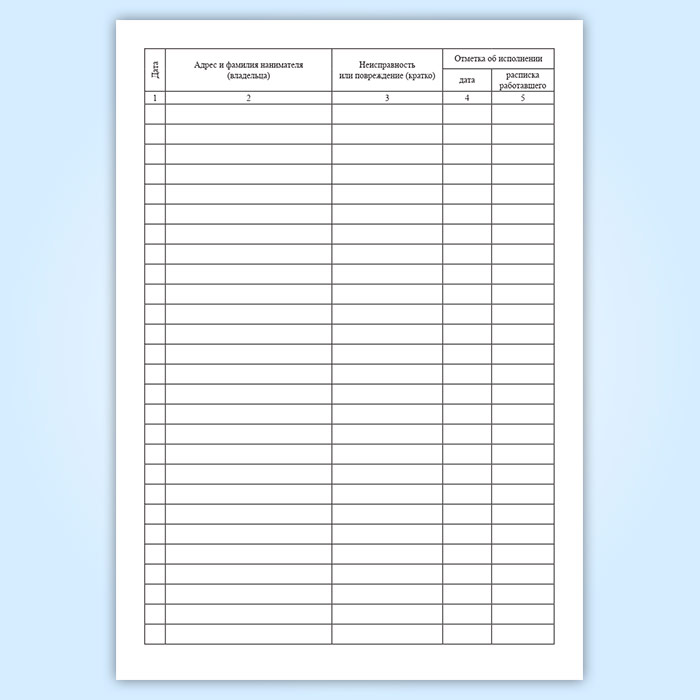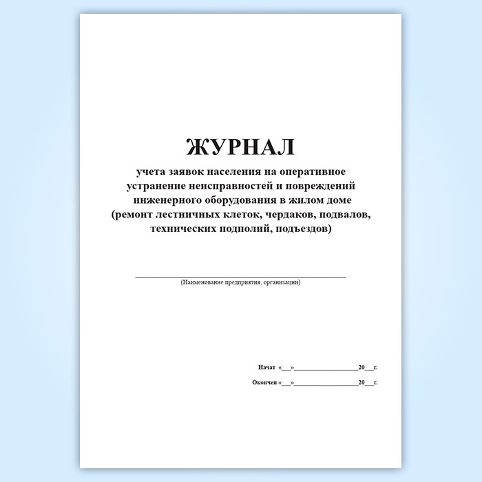 Журнал учета заявок населения на оперативное устранение неисправностей и повреждений инженерного оборудования в жилом доме ремонт лестничных клеток, чердаков, подвалов, технических подполий, подъездов в Обнинске купить