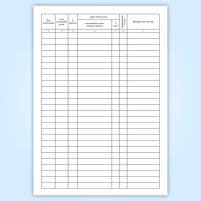 Реестровая книга жилых домов граждан (форма № 7) в Обнинске купить