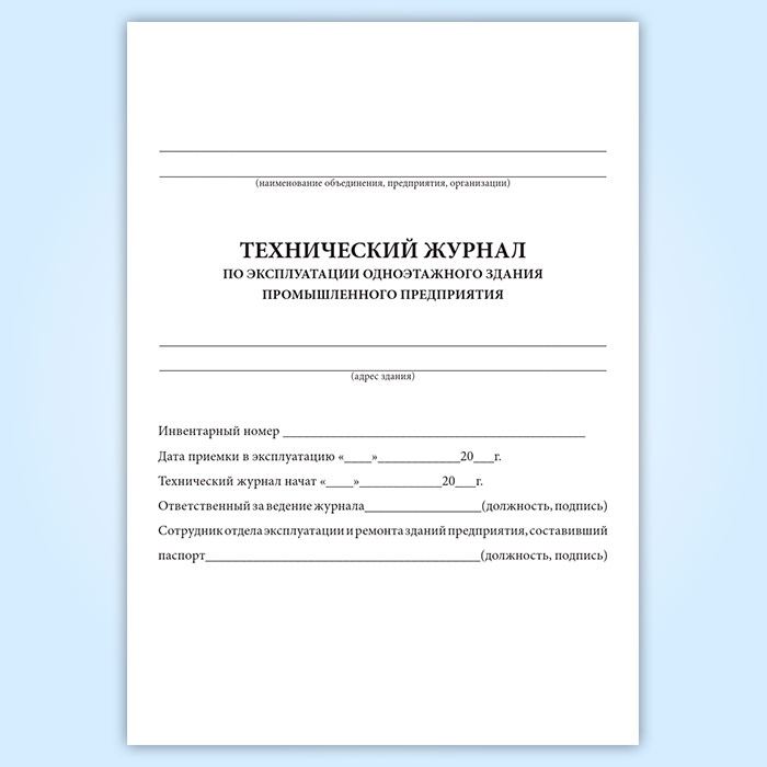 Технический журнал по эксплуатации одноэтажного здания промышленного предприятия в Обнинске купить