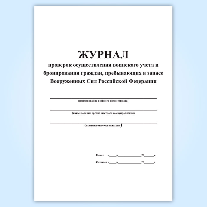 Журнал проверок осуществления воинского учета и бронирования граждан, пребывающих в запасе Вооруженных Сил Российской Федерации в Обнинске купить