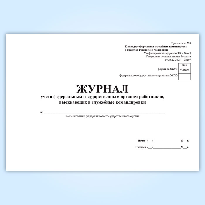 Журнал учета федеральным государственным органом работников, выезжающих в служебные командировки в Обнинске купить