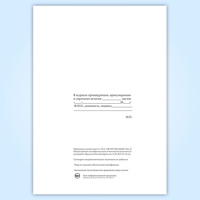 Вы получаете печатную продукцию прошнурованной и c местом для вашей печати в соответствии с действующими нормативными документами: