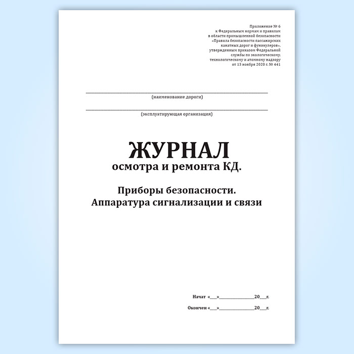 Журнал осмотра и ремонта канатной дороги. Приборы безопасности. Аппаратура сигнализации и связи (форма № 9) в Обнинске купить