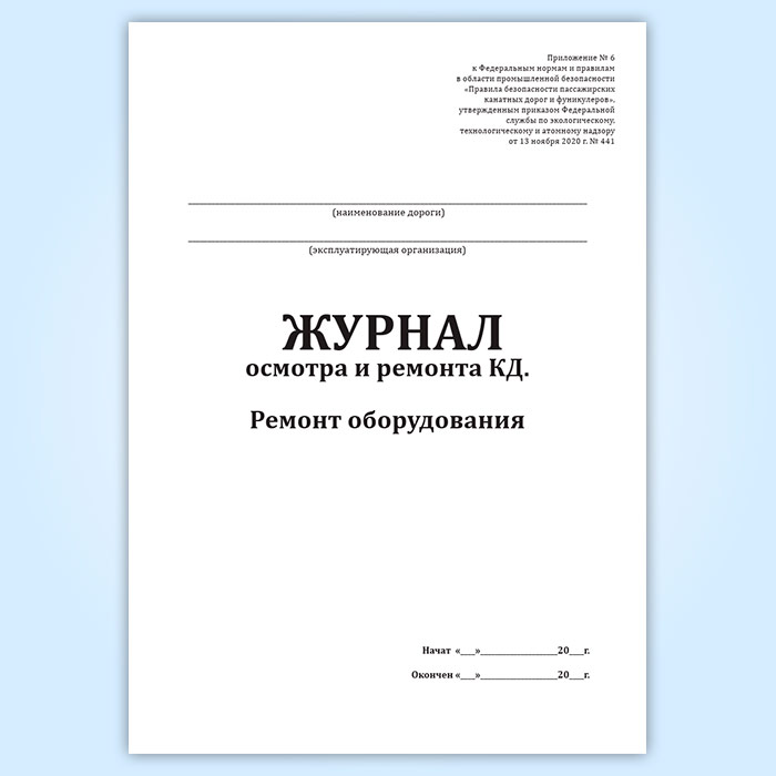 Журнал осмотра и ремонта канатной дороги. Ремонт оборудования (форма № 10) в Обнинске купить