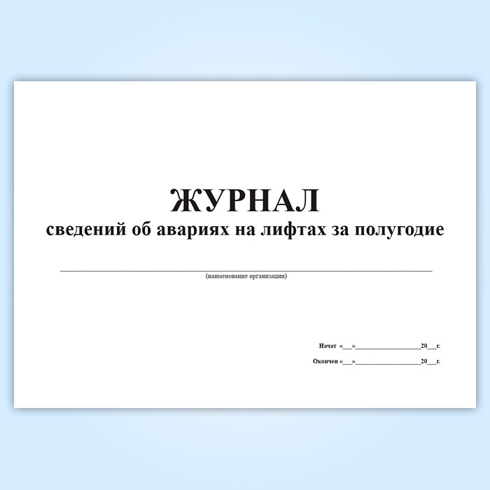 Журнал сведений об авариях на лифтах за полугодие в Обнинске купить