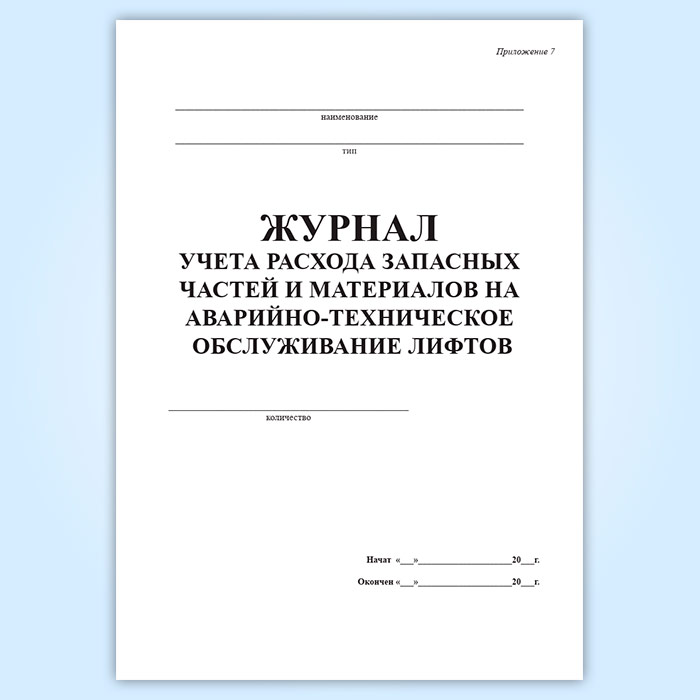 Журнал учета расхода запасных частей и материалов на аварийно-техническое обслуживание лифтов в Обнинске купить