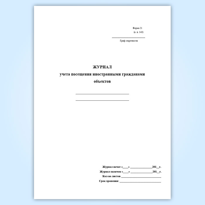 Журнал учета посещения иностранными гражданами объектов (форма 21) в Обнинске купить