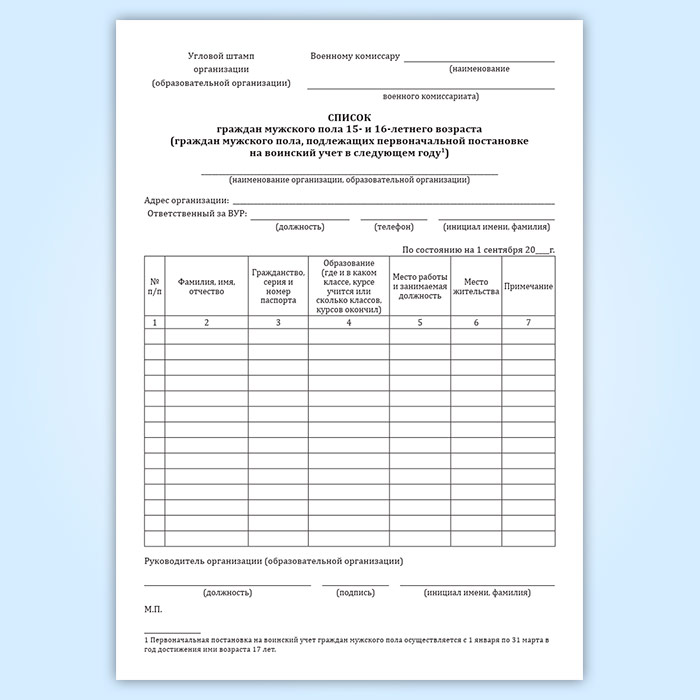 Журнал списков граждан мужского пола 15- и 16-летнего возраста (граждан мужского пола, подлежащих первоначальной постановке на воинский учет в следующем году) в Обнинске купить