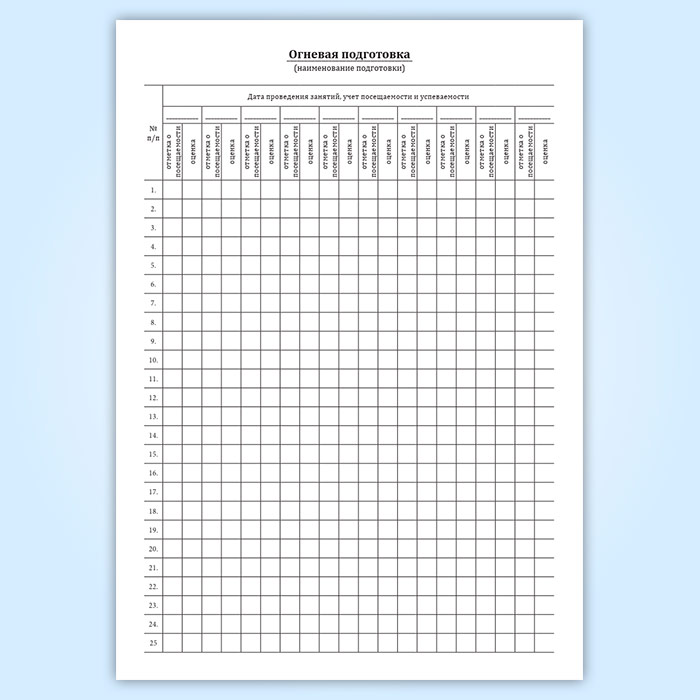 Журнал учета посещаемости занятий и успеваемости сотрудников по профессиональной служебной и физической подготовке в Обнинске купить