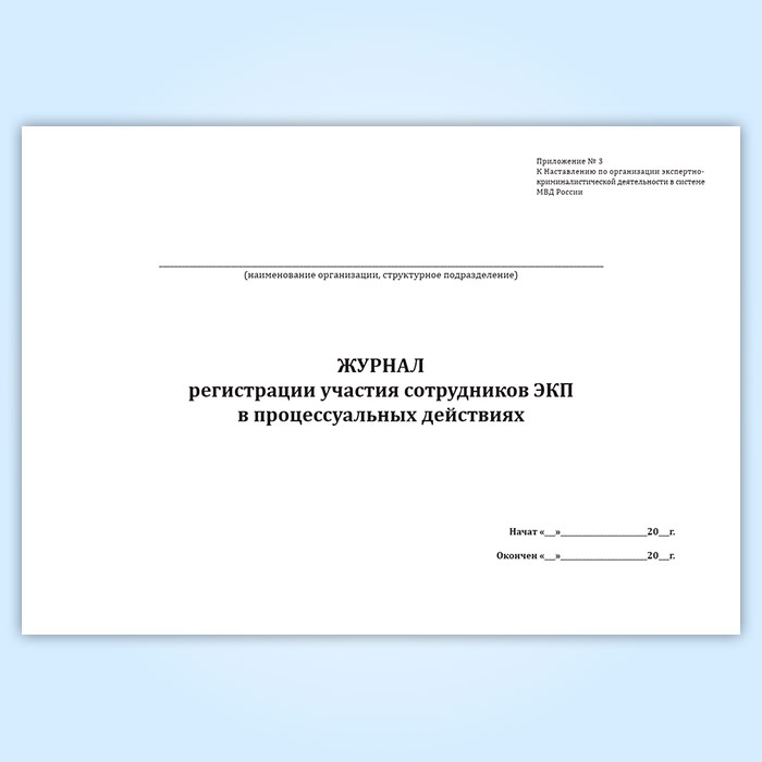 Журнал регистрации участия сотрудников ЭКП в процессуальных действиях в Обнинске купить