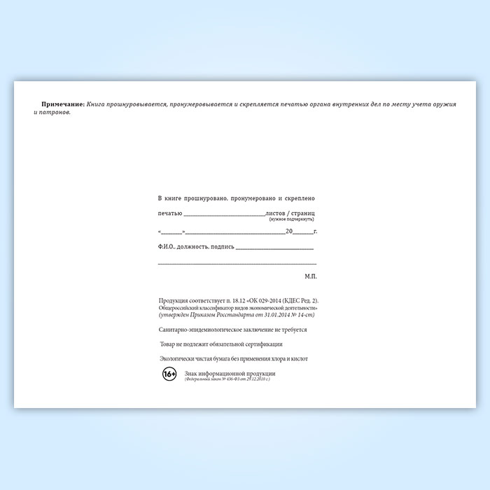 Книга номерного учета и персонального закрепления оружия и патронов в Обнинске купить