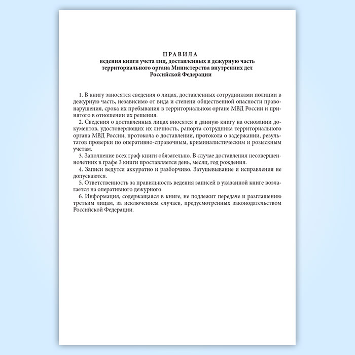 Книга учета лиц, доставленных в дежурную часть территориального органа МВД РФ в Обнинске купить